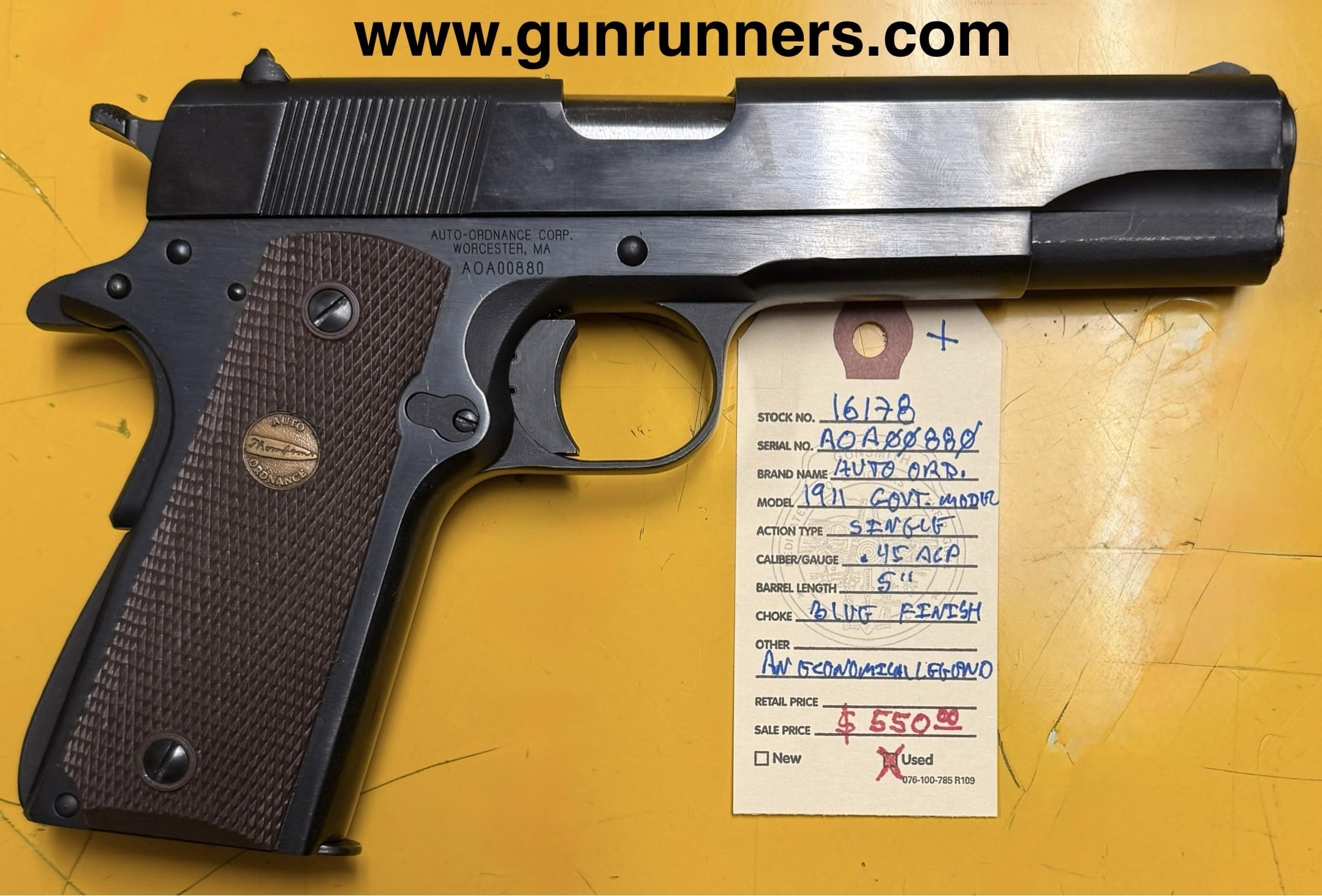 Home / Pistols / Semi Auto Pistols / Auto-Ordnance, used, .45 ACP caliber, 1911 single action, semi auto pistol, 5” barrel, blued finish, with 1 magazine. Auto-Ordnance, used, .45 ACP caliber, 1911 single action, semi auto pistol, 5” barrel, blued finish, with 1 magazine.$550.00 Auto-Ordnance, used, .45 ACP caliber, 1911 single action, semi auto pistol, 5” barrel, blued finish, with 1 magazine. quantity Add to cart SKU: 16178 G/R Category: Semi Auto Pistols Tags: .45 ACP caliber, 1911 single action, 5” barrel, Auto-Ordnance, blued finish, semi auto pistol, used, with 1 magazine. Product ID: 21033 Description Description This economical 1911 is available for purchase at the NORTHERN LIGHTS STORE. Please call 907-276-8105 for additional information. Related products Sig Sauer M17X 9 mm $1,400.00 Add to cart Remington 1911R1 45acp $799.00 Add to cart Glock 22 3rd gen 40S&W $499.00 Add to cart Colt Series 80 1911 45acp $899.00 Add to cart