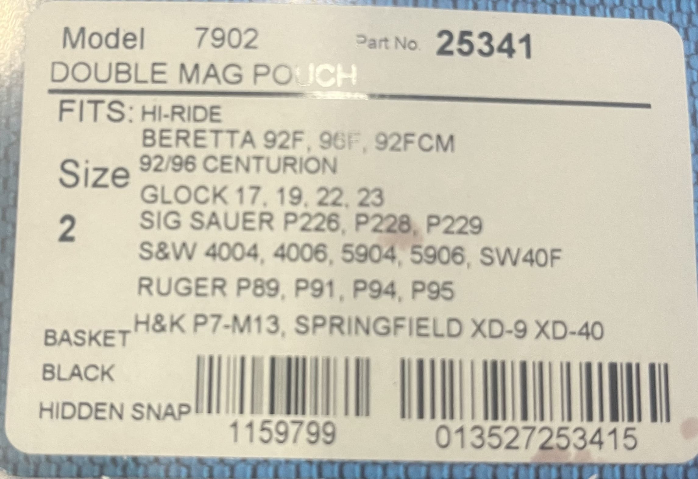 Model 7902 leather double mag pouch, size 2 parts number 25341 fits many different double stack magazines if interested, call 9076321112