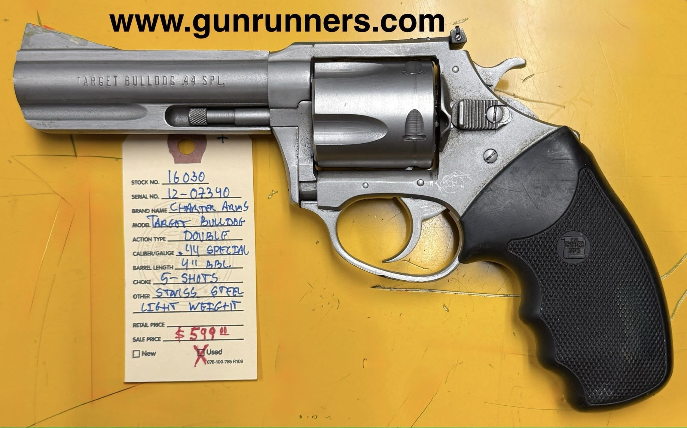 Home / Pistols / Revolvers / Charter Arms, used, .44 Special caliber, Target Bulldog, 4” barrel, adjustable sights, 5-shot, light weight, stainless steel, double action revolver. Charter Arms, used, .44 Special caliber, Target Bulldog, 4” barrel, adjustable sights, 5-shot, light weight, stainless steel, double action revolver.$599.00 Charter Arms, used, .44 Special caliber, Target Bulldog, 4” barrel, adjustable sights, 5-shot, light weight, stainless steel, double action revolver. quantity Add to cart SKU: 16030 G/R Category: Revolvers Tags: .44 Special caliber, 4” barrel, 5 shot, adjustable sights, Charter Arms, double action revolver, light weight., stainless steel, Target Bulldog, used Product ID: 20432 Description Description This light weight revolver is available at the NORTHERN LIGHTS STORE. Please call 907-276-8105 for additional information. Related products Colt Python 357 mag $1,499.00 Add to cart Ruger Vaquero 45lc $750.00 Add to cart Taurus Judge, .45Colt/.410 bore, 6.5” barrel, double-action revolver, used but excellent condition, w/box. $569.00 Add to cart Smith & Wesson, Model 642-2, used, .38 Special +P caliber, 5-shot, double-action only revolver, 1.875” barrel, original box, and S&W custom grips. $475.00 Add to cart