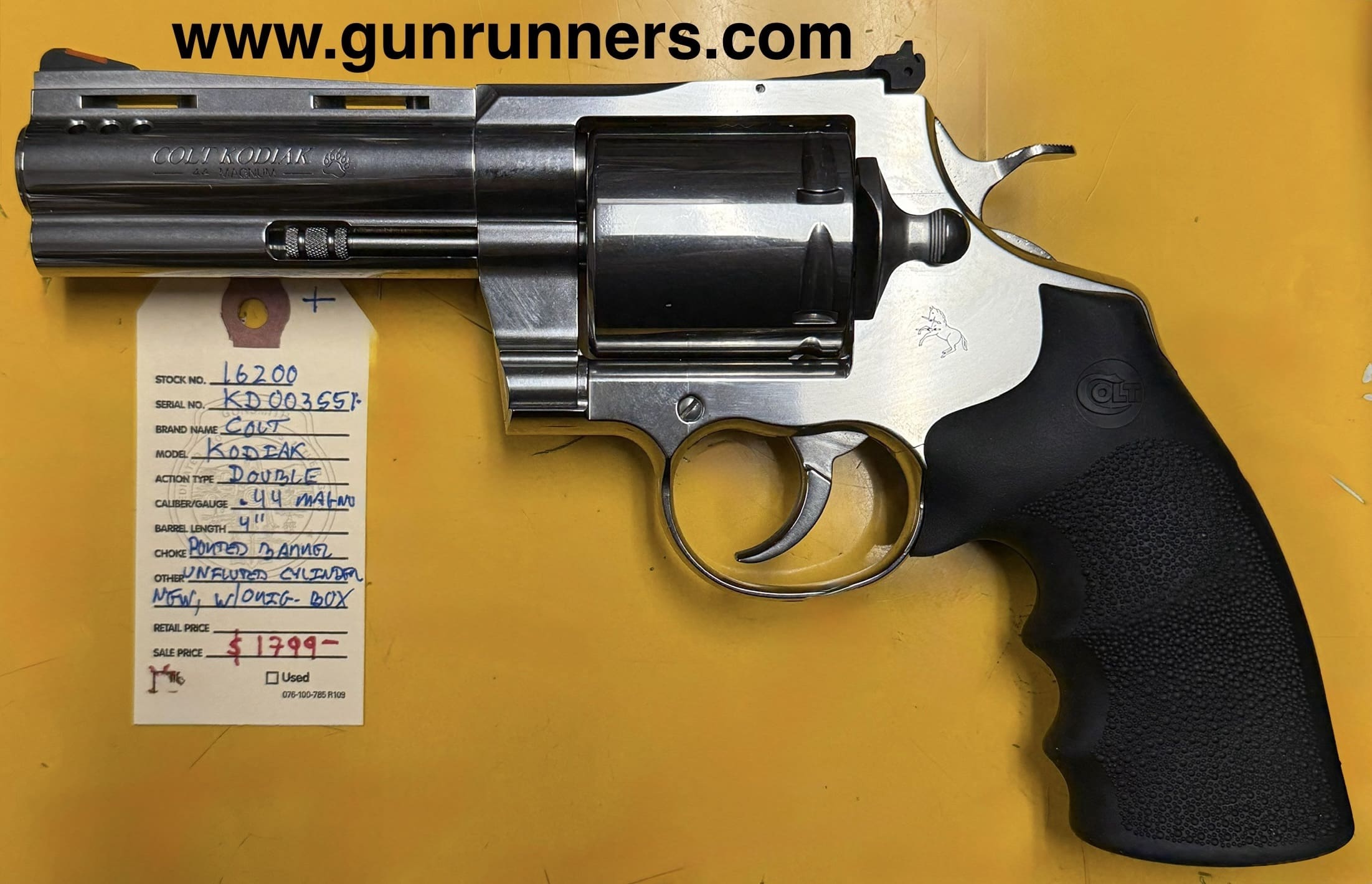 Home / Pistols / Revolvers / Colt, Kodiak, .44 Magnum caliber, 4” ported barrel, unfluted cylinder, bright stainless steel, double action revolver, new, w/box and accessories. Colt, Kodiak, .44 Magnum caliber, 4” ported barrel, unfluted cylinder, bright stainless steel, double action revolver, new, w/box and accessories.$1,799.00 Colt, Kodiak, .44 Magnum caliber, 4” ported barrel, unfluted cylinder, bright stainless steel, double action revolver, new, w/box and accessories. quantity Add to cart SKU: 16200 G/R Category: Revolvers Tags: .44 Magnum caliber, 4” ported barrel, bright stainless steel, Colt, double action revolver, Kodiak, new, new w/box and accessories., unfluted cylinder Product ID: 21228 Description Description This is the “Super Grade” of the Colt Anaconda family and is available at the NORTHERN LIGHTS STORE. Please call 907-276-8105 for additional information. Related products Colt python 357 mag $1,550.00 Add to cart Colt Trooper mk lll 357 mag $799.00 Add to cart Taurus 94 22lr Read more Smith & Wesson 10-6 38Spl $589.00 Add to cart