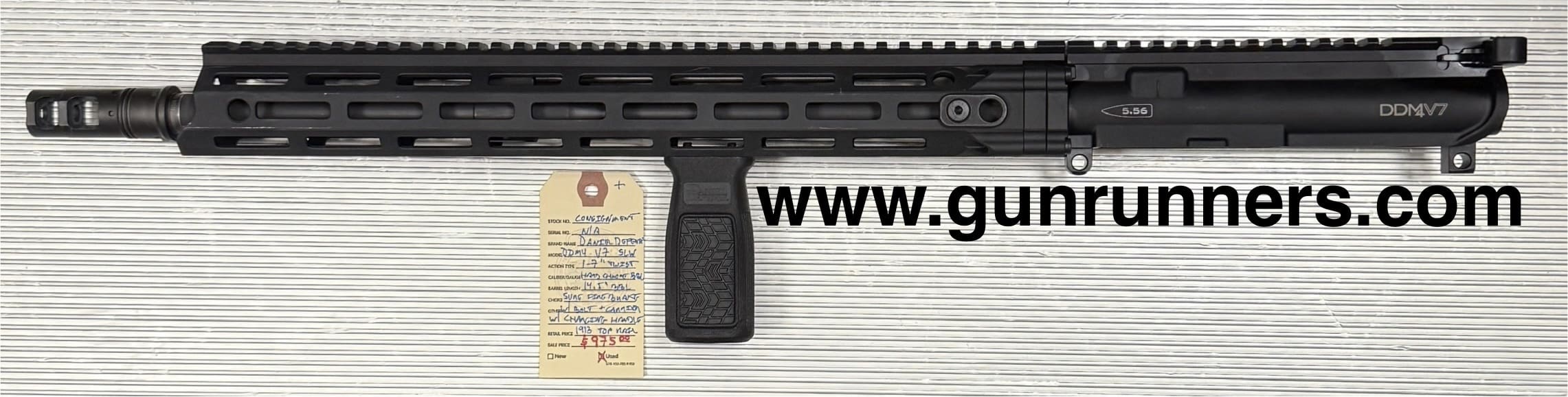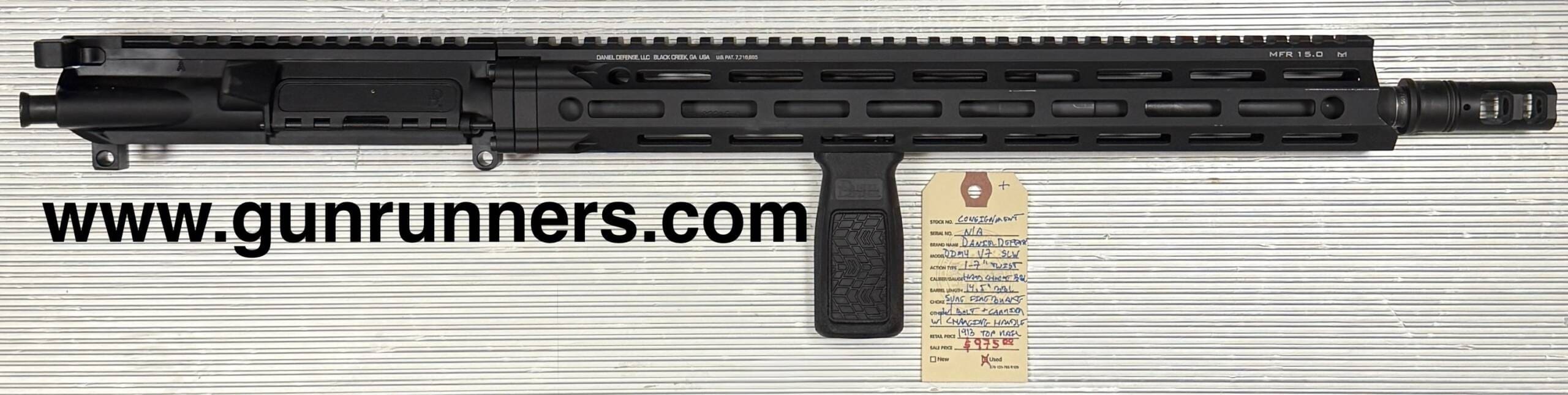 Daniel Defense, used, DDM4 V7 SLW, (AR-15) complete upper including bolt, bolt carrier, and charging handle, 5.56mm caliber, 1-7” twist, 14.5” pinned barrel with Surefire SOCOM (suppressor ready) muzzle brake, hard chrome bore, 1913 top rail. This upper is of the highest quality and has a lifetime warranty.
