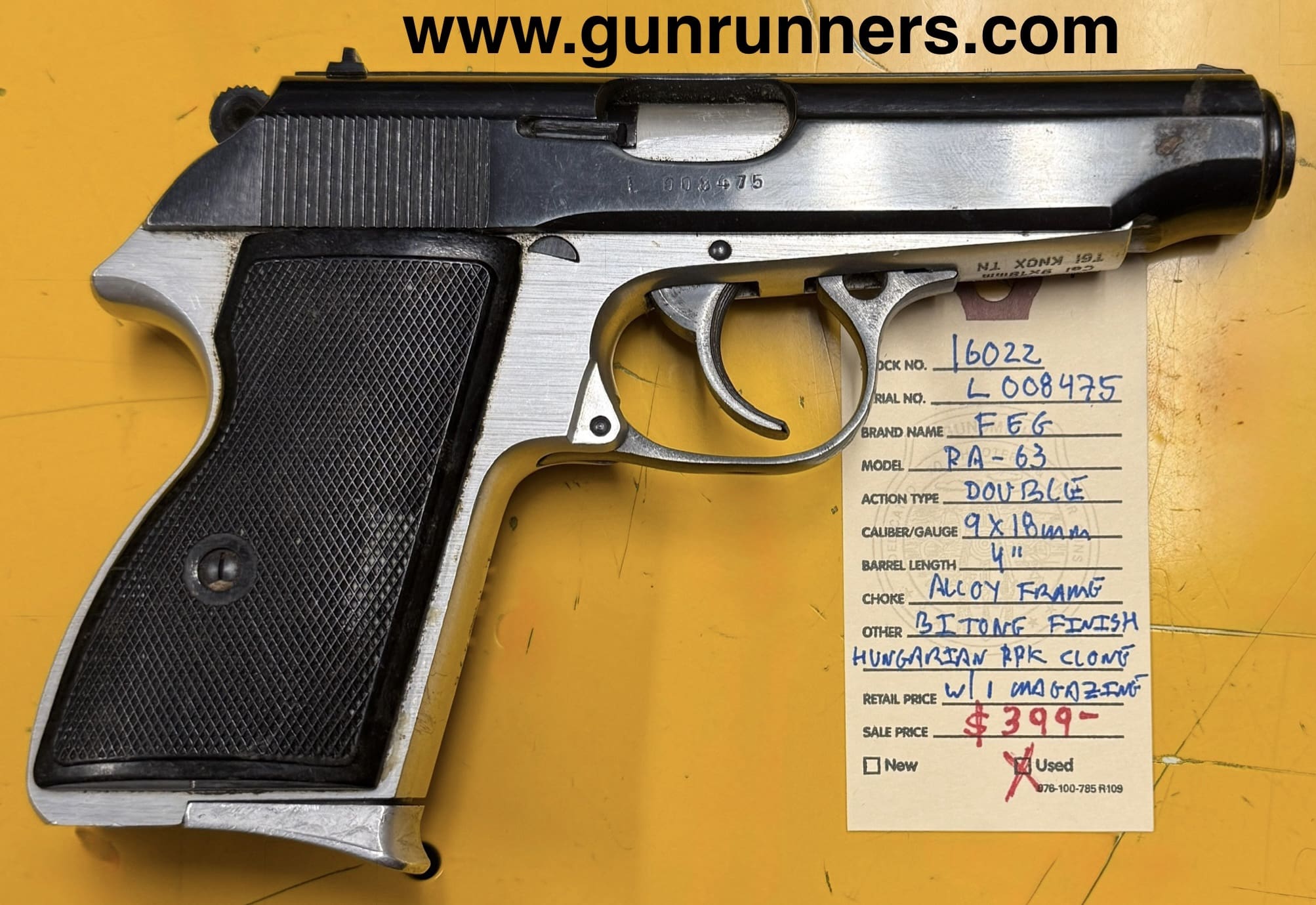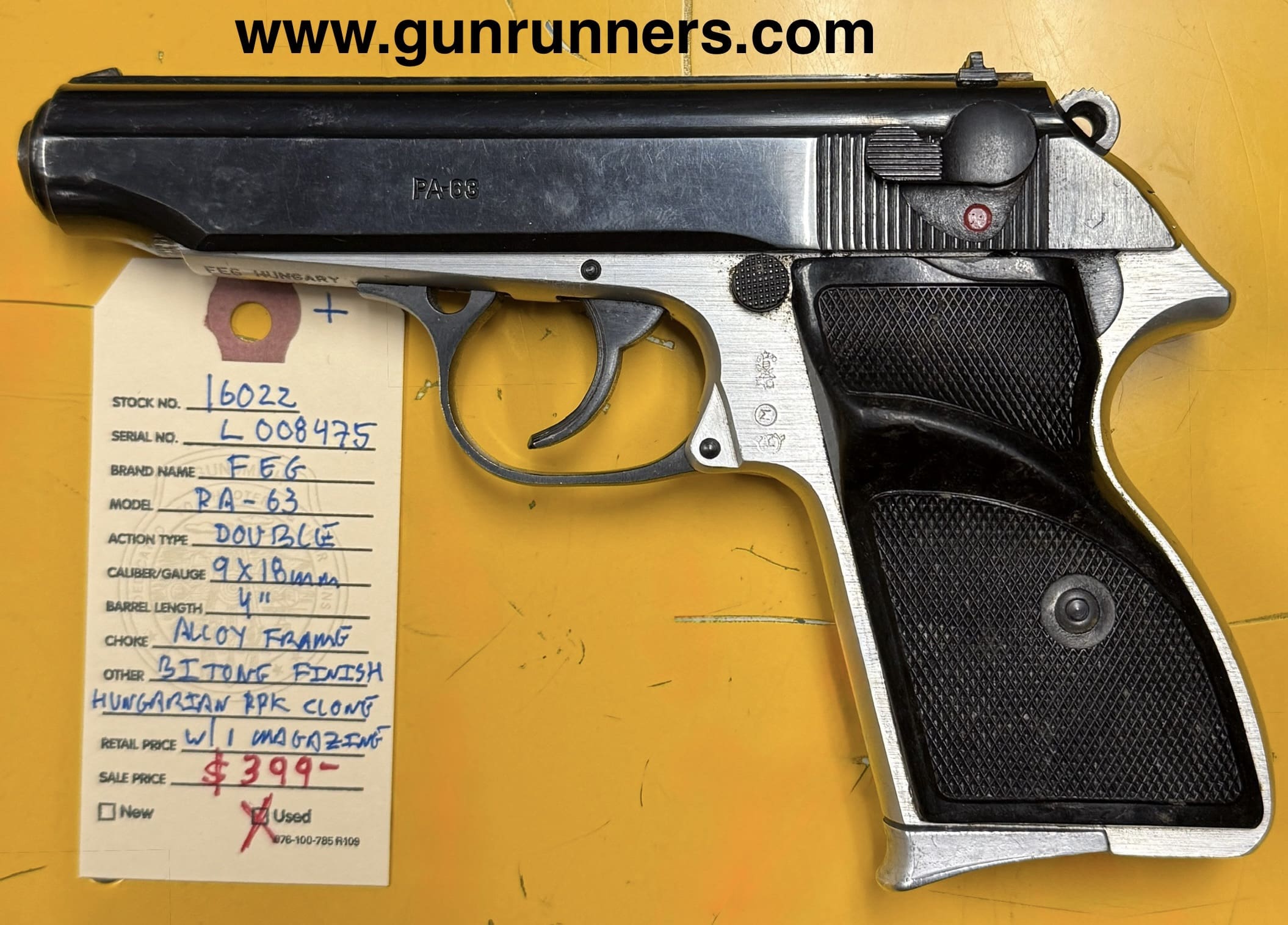 Home / Pistols / Semi Auto Pistols / FEG (Hungary), used, Hungarian PPK clone, 9 X 18mm Makarov caliber, double action semi auto pistol, 4” barrel, light weight alloy frame, bi-tone finish, safety/decocker, w/1 magazine. FEG (Hungary), used, Hungarian PPK clone, 9 X 18mm Makarov caliber, double action semi auto pistol, 4” barrel, light weight alloy frame, bi-tone finish, safety/decocker, w/1 magazine.$399.00 FEG (Hungary), used, Hungarian PPK clone, 9 X 18mm Makarov caliber, double action semi auto pistol, 4” barrel, light weight alloy frame, bi-tone finish, safety/decocker, w/1 magazine. quantity Add to cart SKU: 16022 G/R Category: Semi Auto Pistols Tags: 4” barrel, 9 X 18mm Makarov caliber, alloy frame, bi-tone finish, double action semi auto pistol, FEG (Hungary), Hungarian PPK clone, PA-63, safety/decocker, used, w/1 magazine. Product ID: 20438 Description Description This pistol is available at the NORTHERN LIGHTS STORE. Please call 907-276-8105 for additional information. Related products Kimber Classic custom 45acp $699.00 Add to cart Glock 20 alpha wolf barrel 10 mm $150.00 Add to cart Springfield SA 35 9mm $899.00 Add to cart Glock 23 GEN three with night sights 40S&w Read more