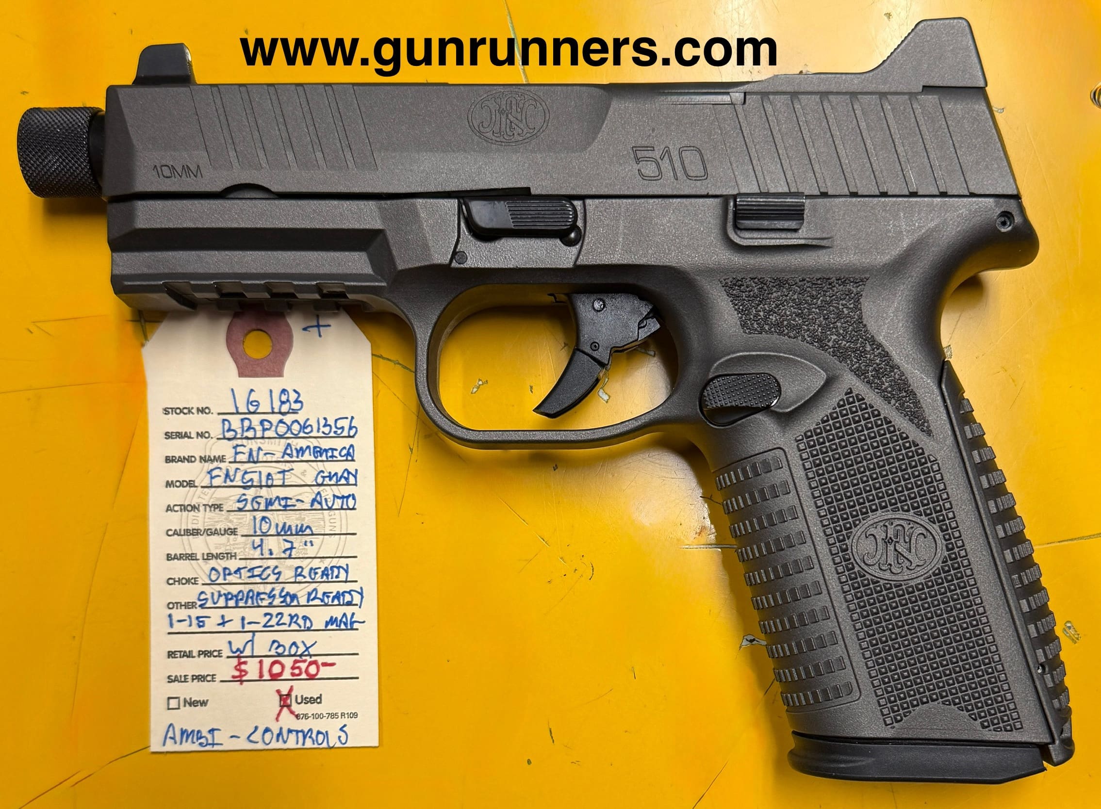 Home / Pistols / Semi Auto Pistols / FN AMERICA, used, FN510T Gray, 10mm caliber, semi auto pistol, optics and suppressor ready, 4.7” barrel, 1-15 round and 1-22 round magazine, ambidextrous controls, nylon carry bag and original box. This pistol is in used/excellent condition. FN AMERICA, used, FN510T Gray, 10mm caliber, semi auto pistol, optics and suppressor ready, 4.7” barrel, 1-15 round and 1-22 round magazine, ambidextrous controls, nylon carry bag and original box. This pistol is in used/excellent condition.$1,050.00 FN AMERICA, used, FN510T Gray, 10mm caliber, semi auto pistol, optics and suppressor ready, 4.7” barrel, 1-15 round and 1-22 round magazine, ambidextrous controls, nylon carry bag and original box. This pistol is in used/excellent condition. quantity Add to cart SKU: 16183 G/R Category: Semi Auto Pistols Tags: 1-15 round and 1-22 round magazine, 10mm caliber, 4.7” barrel, carry bag, FN-AMERICA, FN510T Gray, original box, semi auto pistol, suppressor and optics ready, used, w/ambidextrous controls. Product ID: 21049 Description Description This high quality bear-blaster is available at the NORTHERN LIGHTS STORE. Please call 907-276-8105 for additional information. Related products HK VP 40 40 S&W $700.00 Add to cart Heckler & Koch, (HK), P30SK V3, 9mm Luger caliber, compact, semi-auto pistol, w/Super Luminova sights, w/decocker, 1-12 & 1-15 round magazine, original box and accessories. This pistol is in used/excellent condition. $875.00 Add to cart HK VP9 Optics ready 9 mm $899.00 Add to cart Springfield 1911 compact range officer, light weight 45acp $799.00 Add to cart