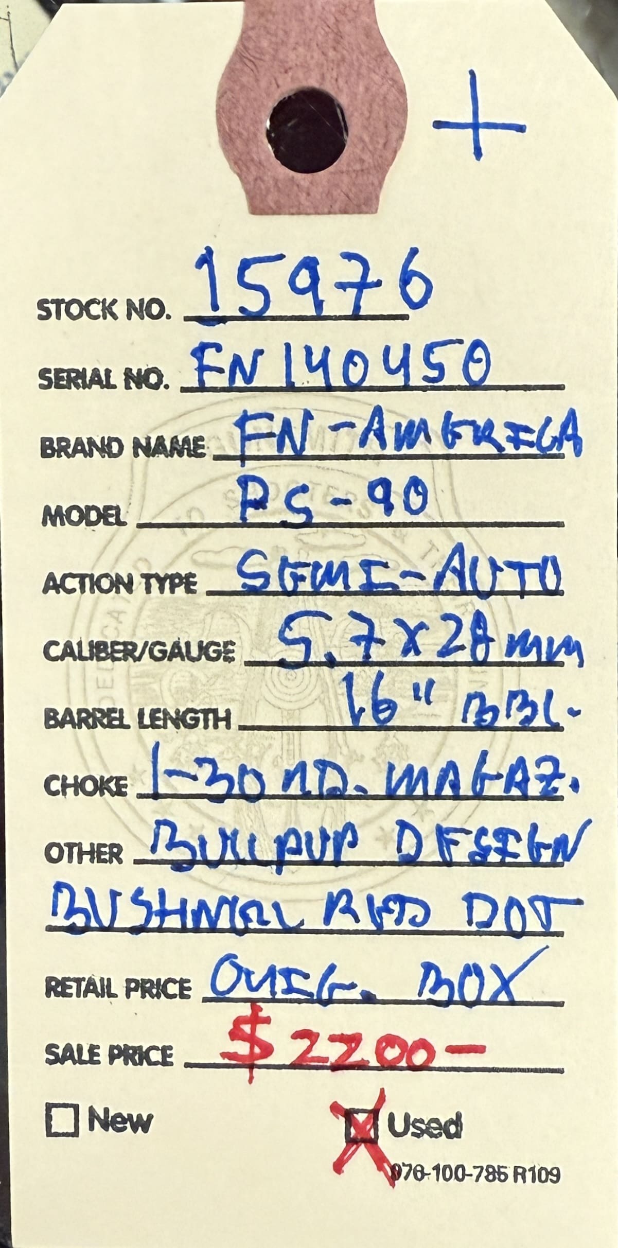 Home / Rifles / Semi Auto Rifles / FN-AMERICA, used, PS-90, 5.7X28mm caliber, bull pup semi-auto rifle, 16” barrel, one 30 round magazine, Bushnell red dot, original FN box. The original StarGate” rifle! FN-AMERICA, used, PS-90, 5.7X28mm caliber, bull pup semi-auto rifle, 16” barrel, one 30 round magazine, Bushnell red dot, original FN box. The original StarGate” rifle!$2,200.00 FN-AMERICA, used, PS-90, 5.7X28mm caliber, bull pup semi-auto rifle, 16” barrel, one 30 round magazine, Bushnell red dot, original FN box. The original StarGate” rifle! quantity Add to cart SKU: 15976 G/R Category: Semi Auto Rifles Tags: 16” barrel, 5.7X28mm caliber, bull pup, Bushnell red dot optic, FN-AMERICA, one 30 round magazine, PS-90, semi-auto rifle, used, w/original box. Product ID: 20212 Description Description This high tech carbine is available at the NORTHERN LIGHTS STORE. Please call 907-276-8105 for additional information. Related products Smith and Wesson M&P15 Sport II 556 $812.00 Add to cart Anderson AM – 15 556 $1,099.00 Add to cart Remington 514 22lr $229.00 Add to cart American Arms GXP – 64 survival rifle 22 LR $299.00 Add to cart
