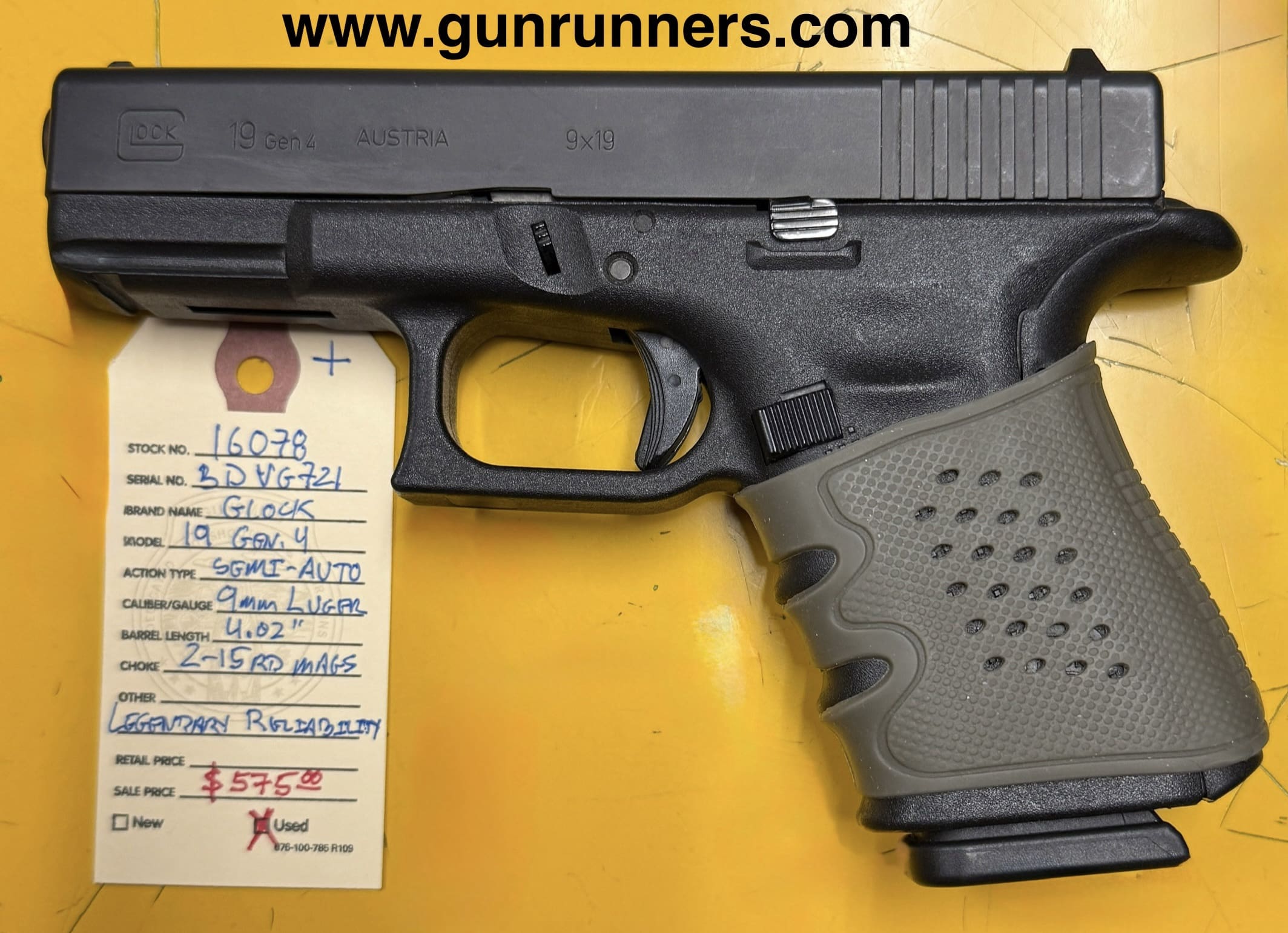 Home / Pistols / Semi Auto Pistols / Glock, used, Model 19 Gen. 4, 9mm Luger caliber, semi auto pistol, 4.02” barrel, w/ 2-15 round magazines. This pistol features legendary reliability and is ideal for self defense. Glock, used, Model 19 Gen. 4, 9mm Luger caliber, semi auto pistol, 4.02” barrel, w/ 2-15 round magazines. This pistol features legendary reliability and is ideal for self defense.$575.00 Glock, used, Model 19 Gen. 4, 9mm Luger caliber, semi auto pistol, 4.02” barrel, w/ 2-15 round magazines. This pistol features legendary reliability and is ideal for self defense. quantity Add to cart SKU: 16078 G/R Category: Semi Auto Pistols Tags: 4.02” barrel, 9mm Luger caliber, Glock, Model 19 Gen. 4, semi auto pistol, used, w/2-15 round magazines. Product ID: 20598 Description Description This self defense pistol is available at the NORTHERN LIGHTS STORE. Please call 907-276-8105 for additional information. Related products Springfield SA 35 9mm $899.00 Add to cart HK VP 40 40 S&W $700.00 Add to cart SALE!! Glock Model 37, .45 GAP caliber, Gen. 3, semi-auto pistol, 4.49” barrel, w/10 round magazine. $599.00 Add to cart SIG-Sauer, used/unfired, P-220 Elite Dark, .45ACP caliber, 4.25” barrel, double action semi auto pistol, dim tritium sights, 3-8 round magazines, w/original box and accessories. A very uncommon model. $1,000.00 Add to cart