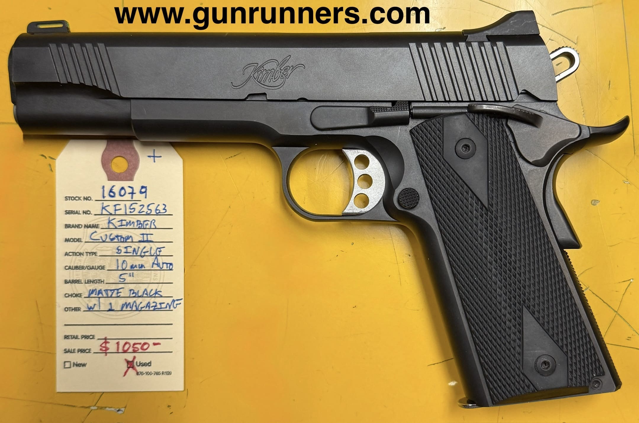 Home / Pistols / Semi Auto Pistols / Kimber, used, Custom II, 10mm caliber, single action, semi auto pistol, 5” barrel, black finish, w/1 magazine. This pistol would be a good Alaskan bear gun. Kimber, used, Custom II, 10mm caliber, single action, semi auto pistol, 5” barrel, black finish, w/1 magazine. This pistol would be a good Alaskan bear gun.$1,050.00 Kimber, used, Custom II, 10mm caliber, single action, semi auto pistol, 5” barrel, black finish, w/1 magazine. This pistol would be a good Alaskan bear gun. quantity Add to cart SKU: 16079 G/R Category: Semi Auto Pistols Tags: 10mm caliber, 1911 single action, 5” barrel, bear gun, black finish, Custom II, Kimber, semi auto pistol, used, w/1 magazine. Product ID: 20595 Description Description This Alaskan “bear gun” is available at the NORTHERN LIGHTS STORE. Please call 907-276-8105 for additional information. Related products Hi Point C9 9 mm $229.00 Add to cart Smith and Wesson M&P 40 40S&W $550.00 Add to cart Glock 21 Gen 4 45 acp with nite sights $650.00 Add to cart Stoger American Eagle 22 Lr Luger $999.00 Add to cart