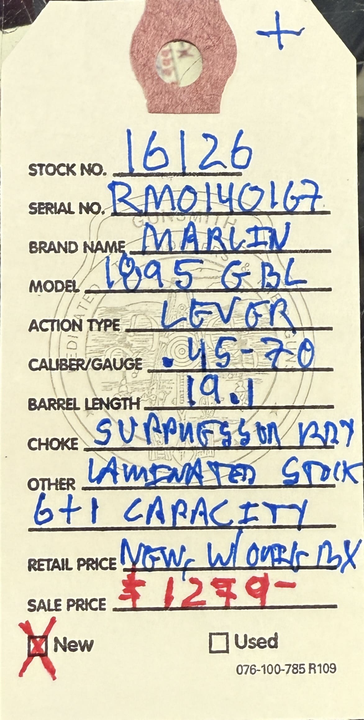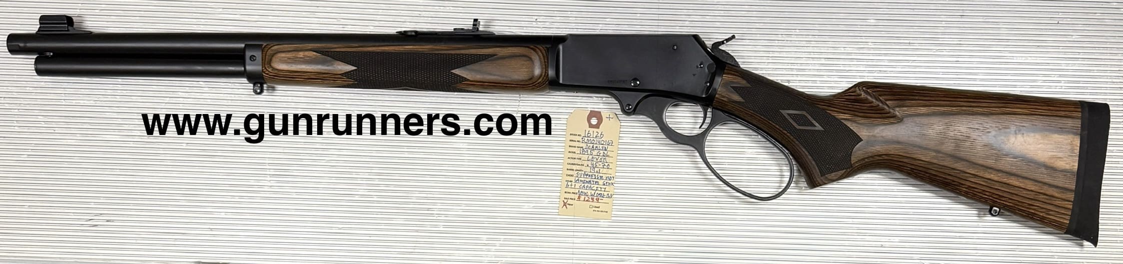Home / Rifles / Lever Action Rifles / Marlin, Model 1895 GBL, .45-70 caliber, lever action rifle, 19.1” barrel, 6+1 capacity, matte blue finish, laminate stock, new, w/box and accessories. Marlin, Model 1895 GBL, .45-70 caliber, lever action rifle, 19.1” barrel, 6+1 capacity, matte blue finish, laminate stock, new, w/box and accessories.$1,279.00 Marlin, Model 1895 GBL, .45-70 caliber, lever action rifle, 19.1” barrel, 6+1 capacity, matte blue finish, laminate stock, new, w/box and accessories. quantity Add to cart SKU: 16126 G/R Category: Lever Action Rifles Tags: .45-70 caliber, 19.1” barrel, 6+1 capacity, absolutely new w/box and accessories., laminated stock, lever-action rifle, Marlin, matte blue finish, Model 1895 GBL Product ID: 20880 Description Description This gorgeous rifle is absolutely brand new and available at the NORTHERN LIGHTS STORE. Please call 907-276-8105 for additional information. Related products Henry, Golden boy 22 lr $499.00 Add to cart Winchester model 55 takedown 3030 win $1,899.00 Add to cart Rossi R92 454 Casul $1,098.00 Add to cart Spencer 1865 Carbine 56 50 $6,500.00 Add to cart
