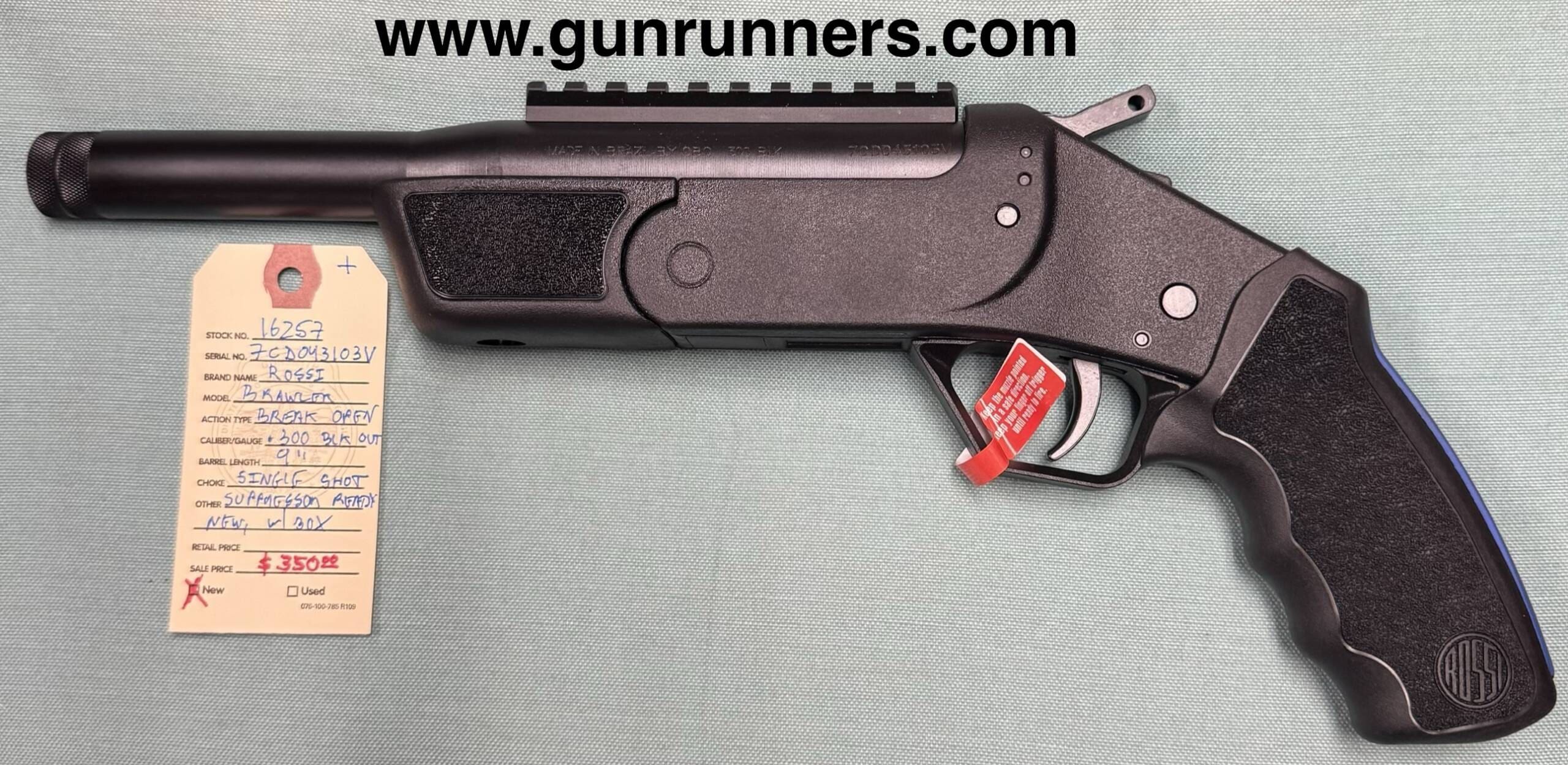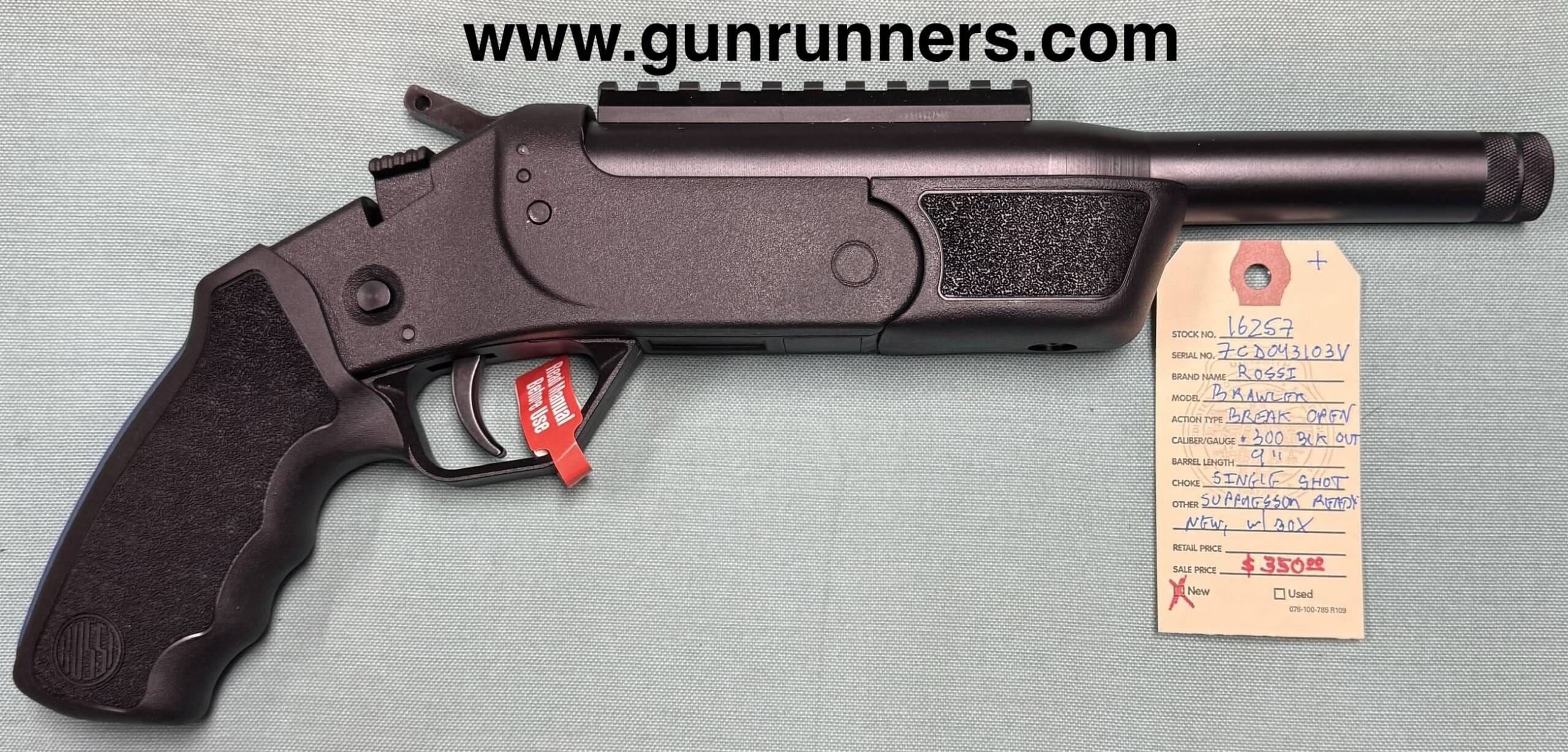 Home / Pistols / Single Shot Pistols / Rossi, new, Brawler, .300 BO caliber, break open, single shot pistol, 9” suppressor ready barrel, new, w/box and accessories. Rossi, new, Brawler, .300 BO caliber, break open, single shot pistol, 9” suppressor ready barrel, new, w/box and accessories.$350.00 Rossi, new, Brawler, .300 BO caliber, break open, single shot pistol, 9” suppressor ready barrel, new, w/box and accessories. quantity Add to cart SKU: 16257 G/R Category: Single Shot Pistols Tags: .300 BO caliber, 9” suppressor ready barrel, Brawler, break-open, new, Rossi, single shot, with box. Product ID: 21546 Description Description This pistol is available at the NORTHERN LIGHTS STORE. Please call 907-245-5486 for additional information. Related products Ruger, new, Model Red Label III, over/under shotgun, 20 gauge, 28” barrel, 3” chamber, walnut/blue, 5 removable chokes, new, w/box and factory hard case. $3,300.00 Add to cart Thompson contender 7 30 Waters $1,200.00 Add to cart Springfield Armory, new, Echelon, 9mm Luger caliber, semi auto pistol, tritium sights, optics ready, 4.5” suppressor ready barrel, 2-17 round magazines, new, w/box and accessories. $750.00 Add to cart Springfield Armory, XDM-Elite 10, 10mm caliber, semi auto pistol, 4.5” barrel, optics ready, 2-15 round magazines, new w/box and all accessories. $674.00 Add to cart