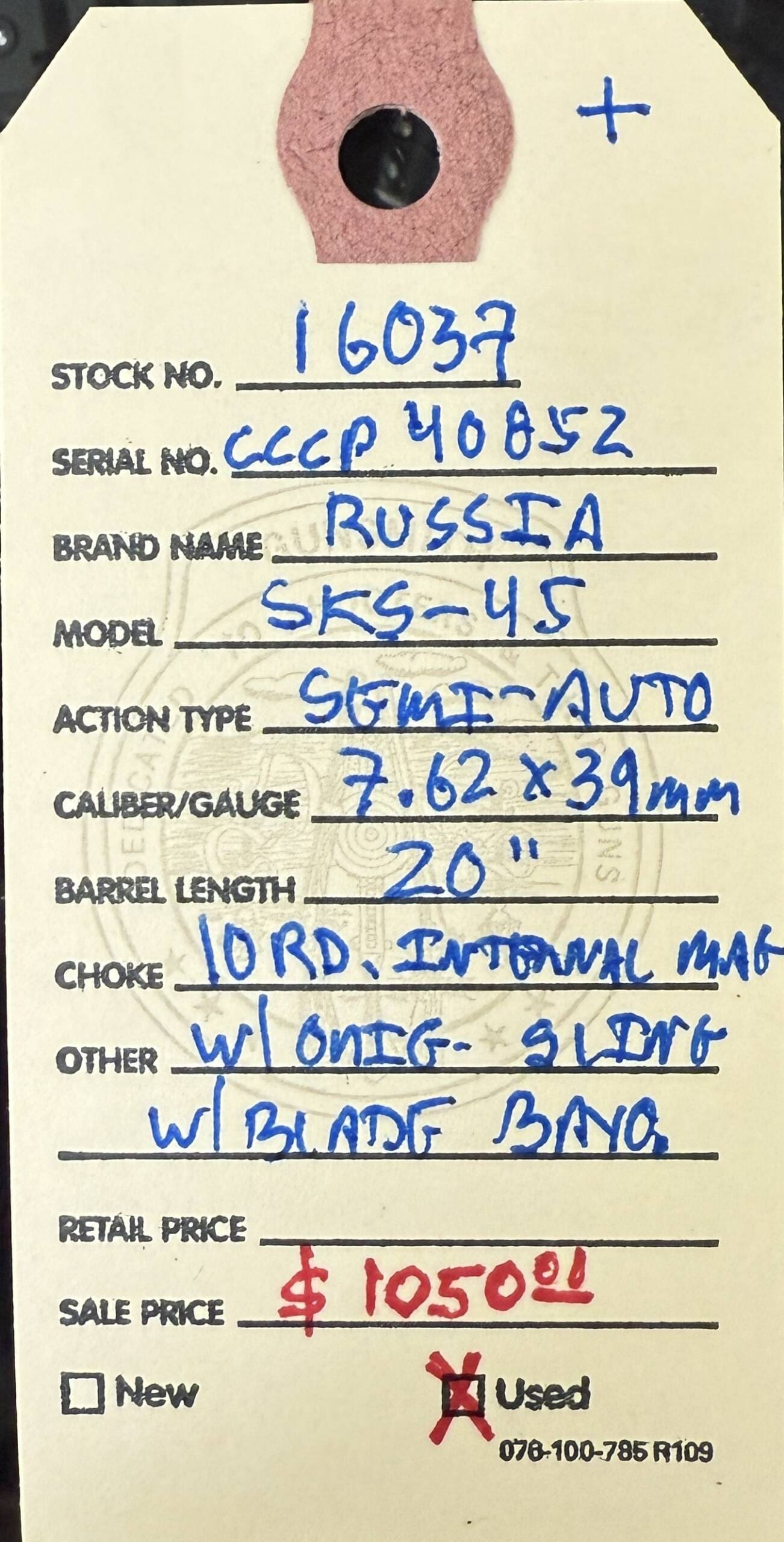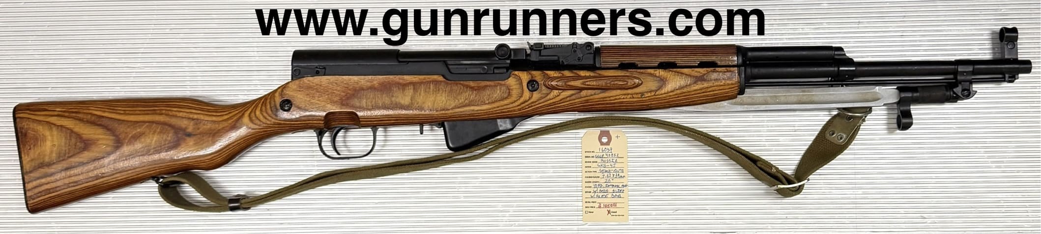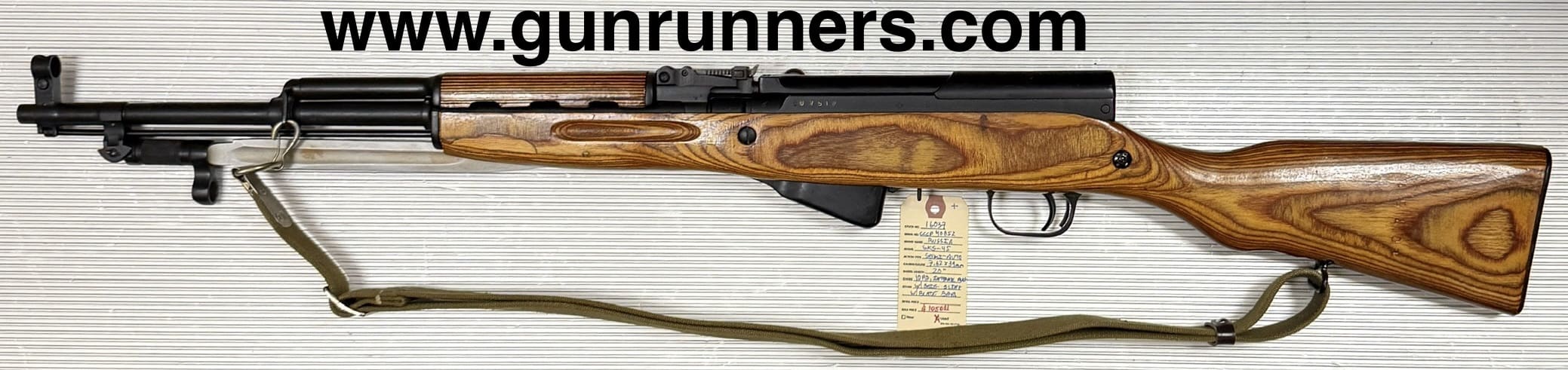 Russia, used, SKS-45, semi-auto rifle, Russian arsenal refinished, 20” barrel, blade bayonet, laminated stock, original Russian sling, 10 round internal magazine. A beautiful rifle!