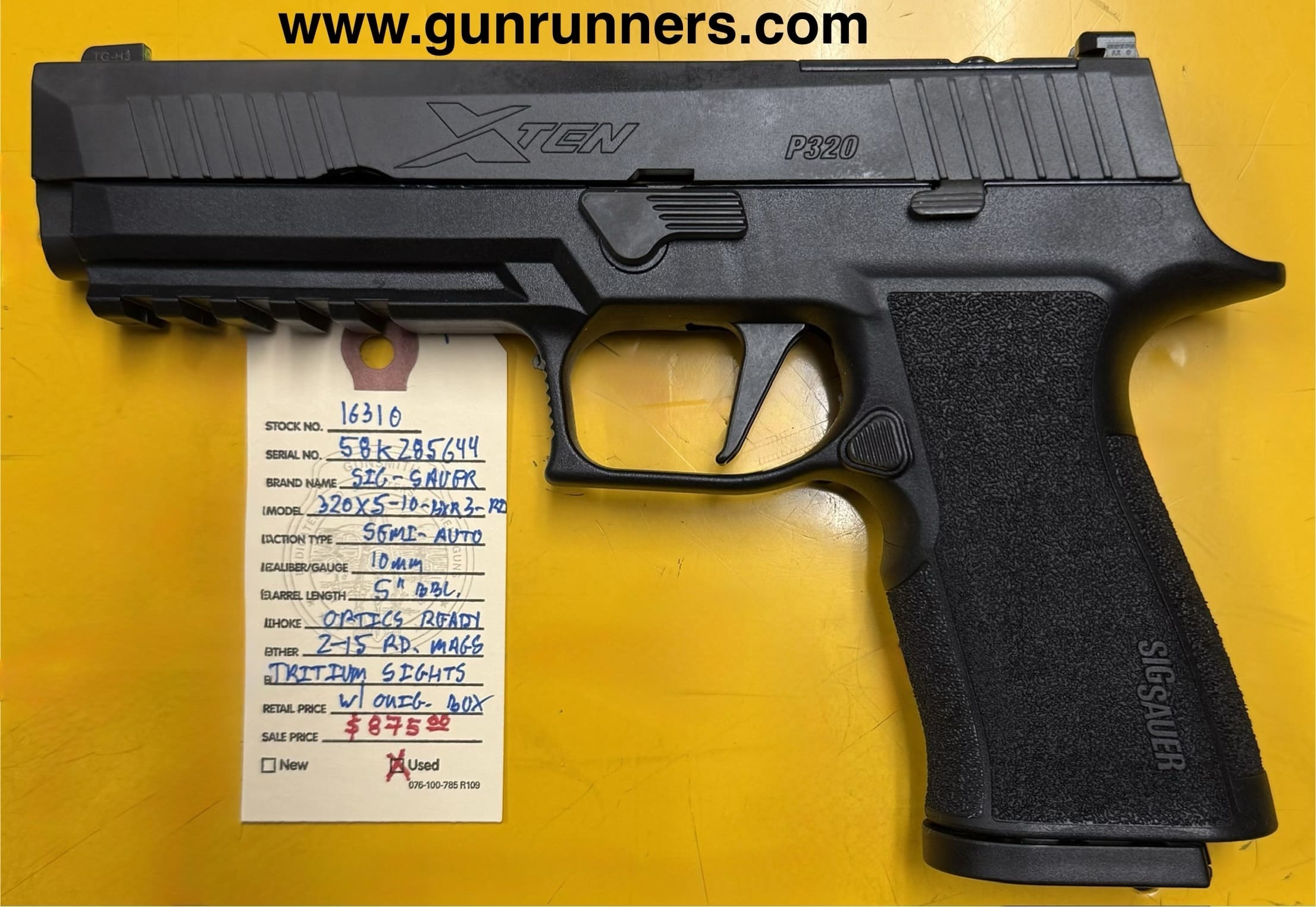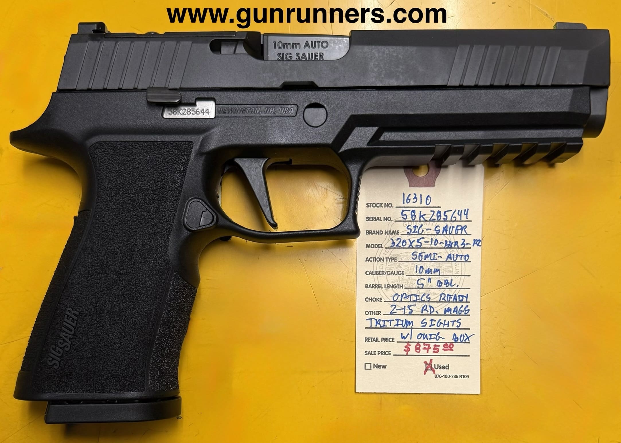 Home / Pistols / Semi Auto Pistols / SIG-Sauer, used/unfired, Model 320X5-10-BXR3-R2, 10mm caliber, semi auto pistol, 5” barrel, optics ready, tritium sights, 2-15 round magazines, with original box and all accessories. SIG-Sauer, used/unfired, Model 320X5-10-BXR3-R2, 10mm caliber, semi auto pistol, 5” barrel, optics ready, tritium sights, 2-15 round magazines, with original box and all accessories.$875.00 SIG-Sauer, used/unfired, Model 320X5-10-BXR3-R2, 10mm caliber, semi auto pistol, 5” barrel, optics ready, tritium sights, 2-15 round magazines, with original box and all accessories. quantity Add to cart SKU: 16310 G/R Category: Semi Auto Pistols Tags: 10mm caliber, 5” barrel, Model 320X5-10-BXR3-R2, optics ready, semi auto pistol, SIG-Sauer, tritium sights, used/unfired, with original box and all accessories. Product ID: 21779 Description Description This Alaskan Bear Blaster is available at the NORTHERN LIGHTS STORE. Please call 907-245-5486 for additional information. Related products Glock 43 9mm $499.00 Add to cart Hi Point C9 9 mm $229.00 Add to cart Glock 21 Gen 4 45 acp with nite sights $650.00 Add to cart Springfield SA 35 9mm $899.00 Add to cart