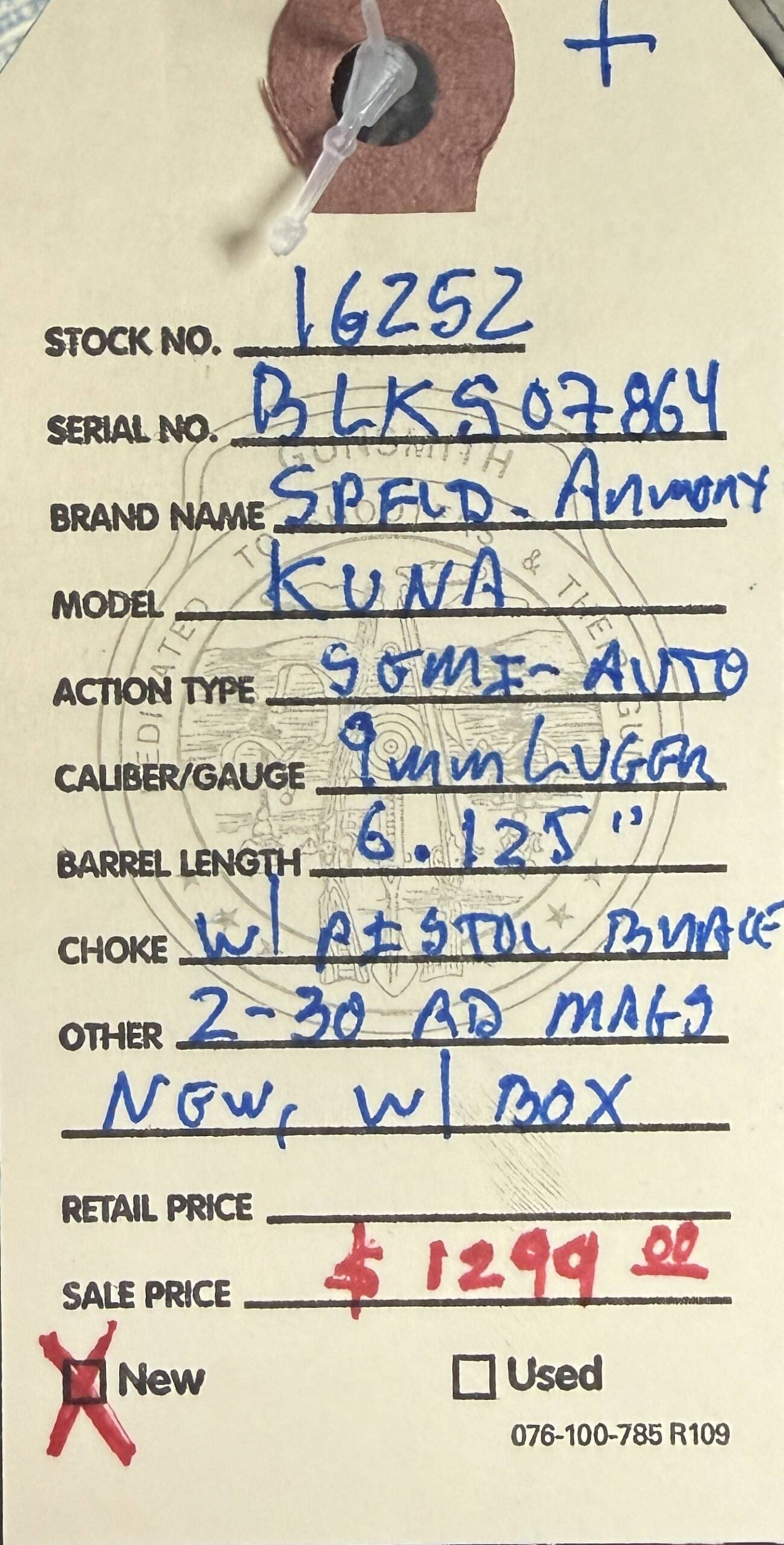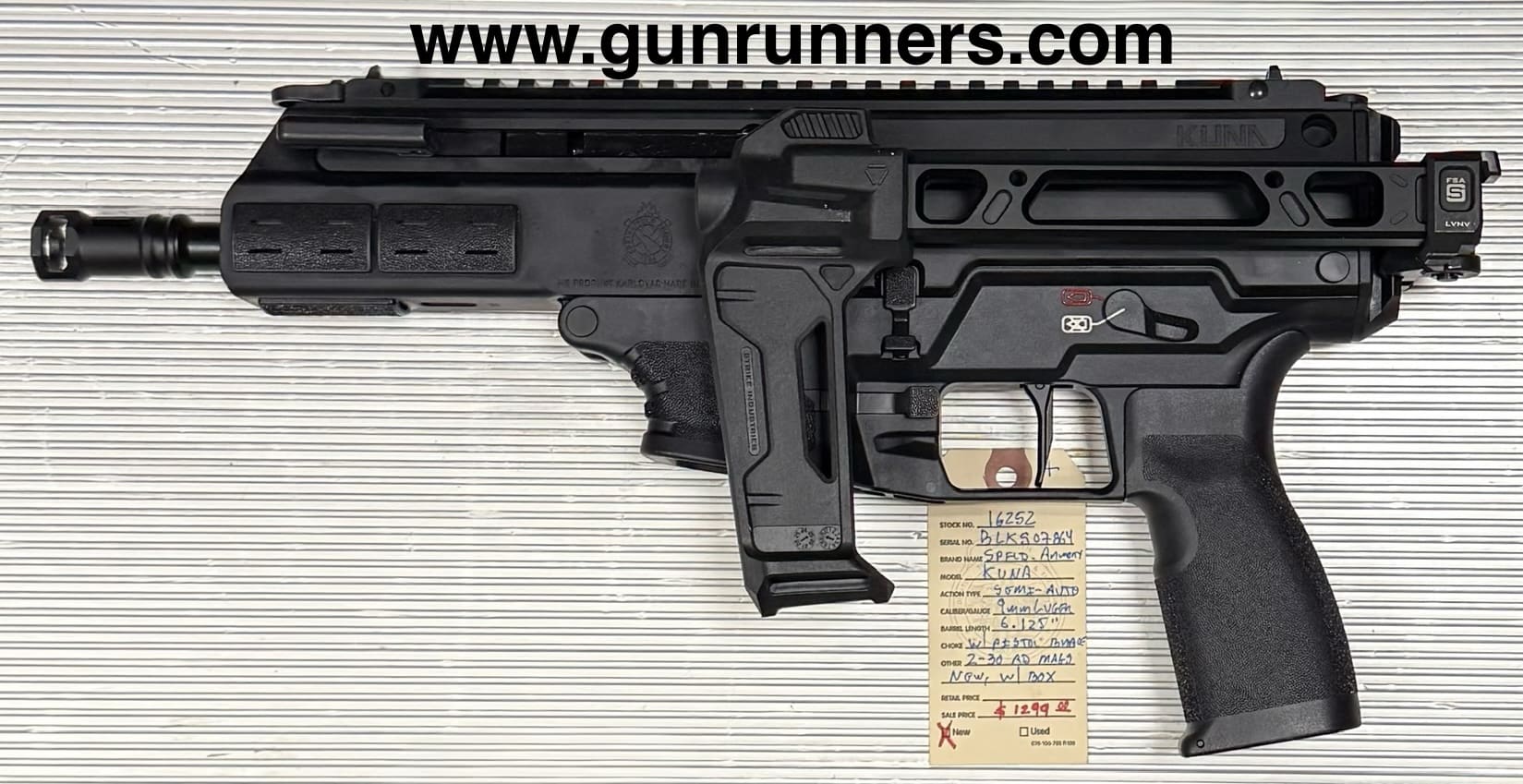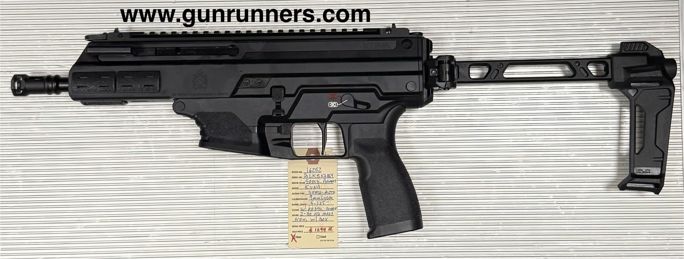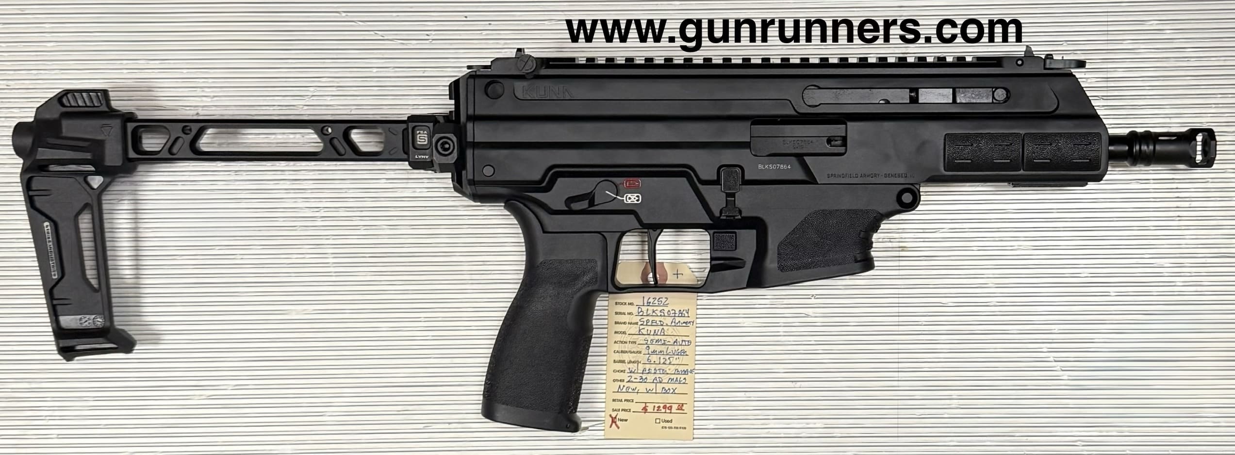 Home / Pistols / Semi Auto Pistols / Springfield Armory, new, Kuna, 9mm Luger caliber, semi auto pistol with pistol brace, 2-30 round magazines, 6.125” barrel, new with box and all accessories. Springfield Armory, new, Kuna, 9mm Luger caliber, semi auto pistol with pistol brace, 2-30 round magazines, 6.125” barrel, new with box and all accessories.$1,299.00 Springfield Armory, new, Kuna, 9mm Luger caliber, semi auto pistol with pistol brace, 2-30 round magazines, 6.125” barrel, new with box and all accessories. quantity Add to cart SKU: 16252 G/R Category: Semi Auto Pistols Tags: 2-30 round magazines, 6.125” barrel, 9mm Luger caliber, Kuna, new, new with box and accessories., semi auto pistol with pistol brace, Springfield Armory Product ID: 21555 Description Description This pistol braced handgun is available at the NORTHERN LIGHTS STORE. Please call 907-245-5486 for additional information. Related products SALE!! Glock Model 37, .45 GAP caliber, Gen. 3, semi-auto pistol, 4.49” barrel, w/10 round magazine. $599.00 Add to cart Springfield XDME 10 mm $653.00 Add to cart Ruger Max 4 9mm $439.00 Add to cart Smith &Wesson M&P 40 40S&W $499.00 Add to cart